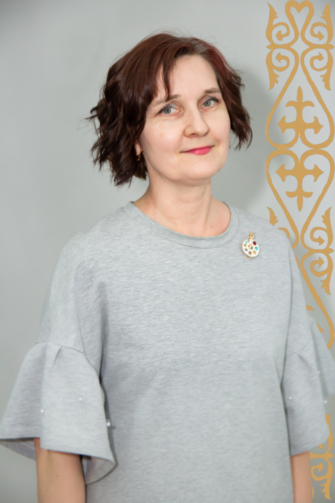 Педагог дополнительного образования, руководитель изостудии «Сымбат». Образование: высшее педагогическое, педагогический стаж - 28 лет.
