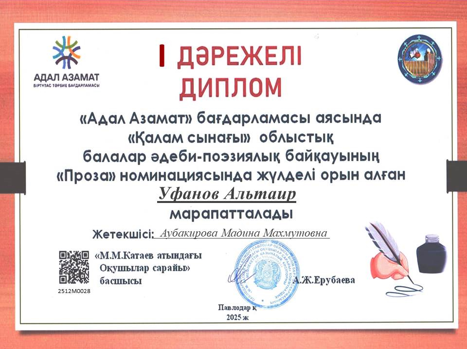 3. Уфанов Альтаир – Ш.Шөкин атындағы ЖОББМ, Павлодар қ.