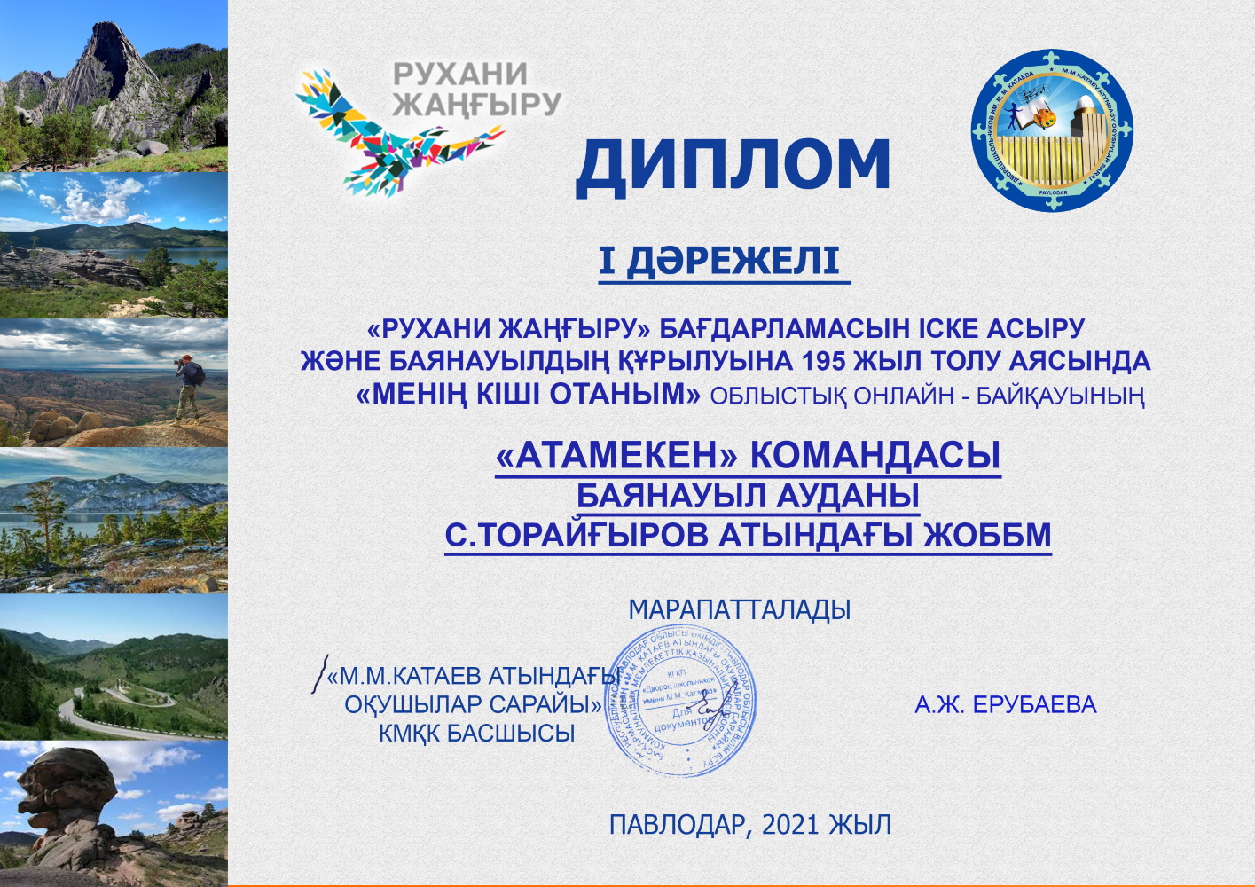 Во Дворце школьников имени М.М.Катаева прошел ежегодный областной конкурс «Моя малая Родина» в рамках реализации программы «Рухани жаңғыру» и 195-летия образования Баянаула. В первом этапе конкурса приняли участие 115 учащихся из 22 школ области. 90 победителей из 18 школ отборочного этапа участвовали в областном этапе, проходившем в онлайн формате 13 мая 2021 года.