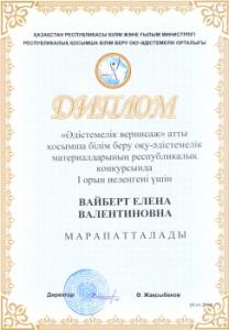 В октябре 2010 учебного года педагоги дополнительного образования Павлодарской области приняли участие в Республиканской выставке учебно-методических материалов «Методический вернисаж», на которую были представлены 11 лучших материалов по итогам областной выставки «Педагогическая мастерская». Серьезной победой методической службы Дворца школьников стало определяющее участие в Республиканской выставке учебно-методических материалов «Методический вернисаж», в которой 7 материалов педагогов Павлодарской области были отмечены хорошими результатами: Сборник «Давайте выпускать газету» - I место в номинации «Информационно – методическая», Вайберт Елена Валентиновна – педагог дополнительного образования, руководитель пресс-центра Павлодарского областного Дворца школьников им. М.М. Катаева. Работа Вайберт Е.В. «Давайте выпускать газету» в качестве пособия для школьных редколлегий и начинающих журналистов представляет собой несомненную ценность, так как методической литературы подобного рода, ориентированной на данную целевую аудиторию в Казахстане практически не существует. Сборник состоит из глав, логически последовательных и связанных между собой, в которых объясняется специфика журналистики как вида деятельности, особенности жанров, технология интерью, этические законы журналистики, техническая и экономическая сторона создания газеты, основы литературного редактирования. Язык и стиль адаптированы к восприятию аудитории. Данная работа может быть рекомендована в качестве пособия для школьных редколлегий, студентов факультетов журналистики и всех желающих узнать основы методики создания газеты. Некоторые аспекты деятельности Общественного объединения «Областная детско-юношеская организация «Ертіс»» Павлодарской области – I место в номинации «Организационно - методическая», Фирсова Надежда Ивановна – методист Павлодарского областного Дворца школьников им. М.М. Катаева, Голышева Марина Мельсовна – педагог – организатор, Ташпенова Айя Амирхановна – педагог дополнительного образования.