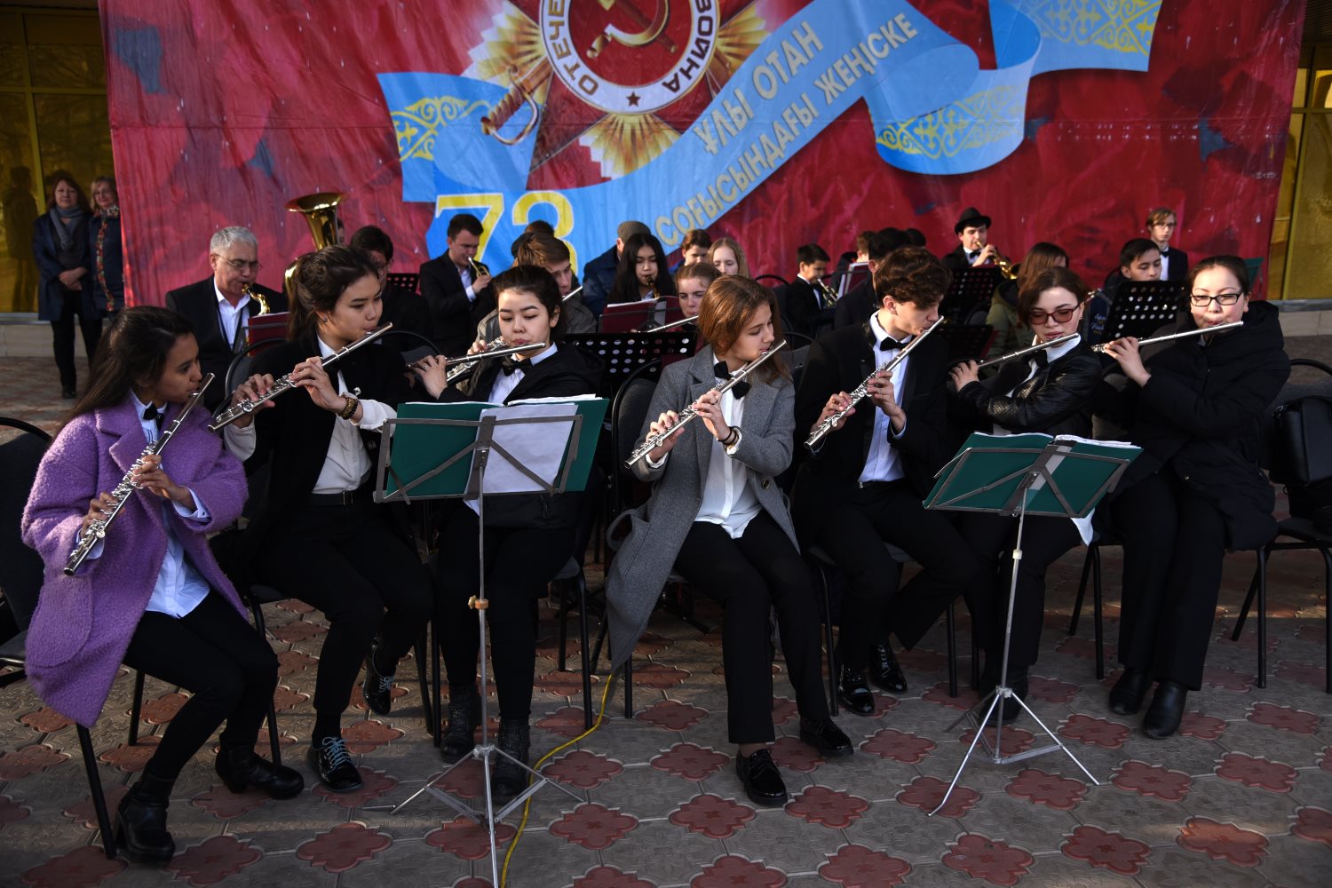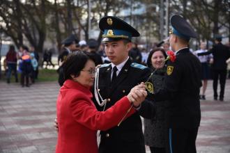 В этом году воспитанники Павлодарского Дворца школьников впервые провели флешмоб «Вальс Победы», символизирующий подвиг целого народа и окончание войны. В едином вихре вальса закружились порядка 40 пар – это воспитанники танцевальных студий Дворца школьников «Вдохновение», «Анастасия», «Блэйз», воспитанники кадетской школы-интерната. – Ещё несколько лет, и ветеранов не будет рядом с нами, но мы будем продолжать наши флешмобы в память о них и ради сегодняшнего поколения, – говорит организатор флешмоба, заведующая художественно-постановочной частью Дворца школьников Марина Билая. «Вальс Победы» прошёл под звуки духового оркестра музыкального колледжа. Наши земляки, павлодарцы, сражались на всех фронтах — от Ленинграда до Кавказа, защищали легендарную Брестскую крепость, форсировали Днепр, воевали за Молдавию. Их могилы есть и на земле европейских стран, порабощённых гитлеровским фашизмом. Немало павлодарцев дошли до Берлина. За ратные подвиги более 10 тысяч воинов Павлодарского Прииртышья были награждены орденами и медалями. Всего в Красную Армию из Павлодарской области было мобилизовано более 46 тысяч человек, 22 тысячи из них не вернулись с фронта. Почти в каждой семье есть свои герои, и память о них не должна потускнеть, сколько бы времени ни прошло! Память о войне священна. Она наполняет особым смыслом нашу мирную жизнь, позволяет осознать, что такое истинный патриотизм, единство народа и его воля к свободе. Сколько бы ни прошло лет, молодое поколение всегда будет в вечном долгу перед теми, кто добыл эту Победу. |